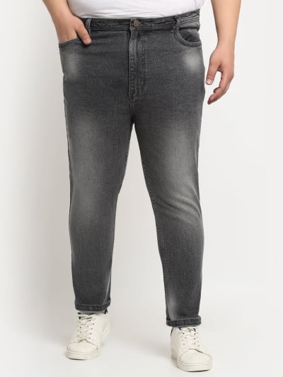 Plus Size Men Comfort Mildly Distressed Light Fade Stretchable Cotton Jeans