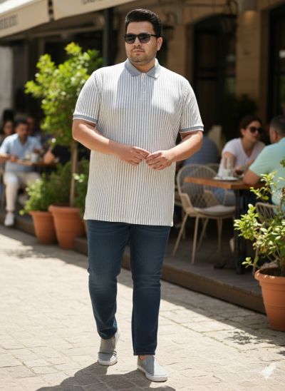 Plus Size Men Striped Polo Collar Cotton T-shirt