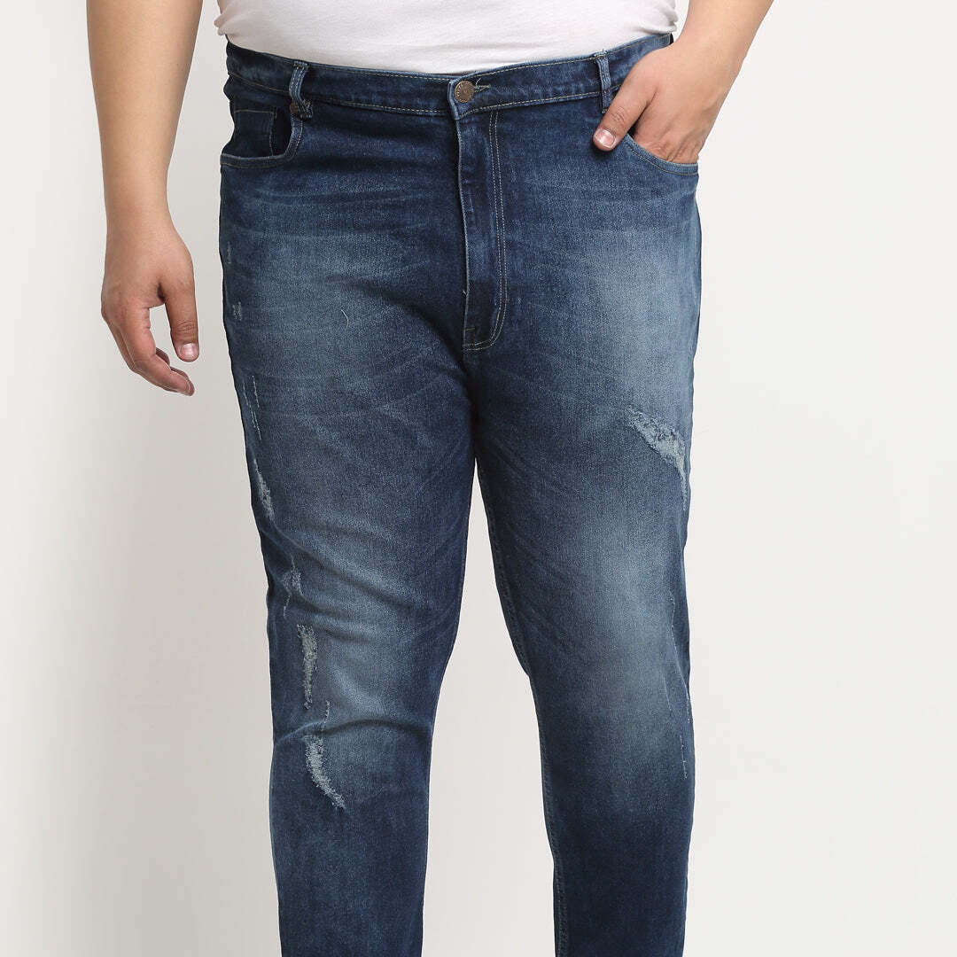 Plus Size Men Blue Comfort Mildly Distressed Light Fade Cotton Stretchable Jeans